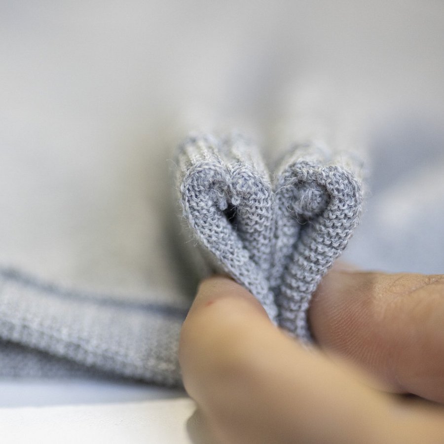 Wir verarbeiten ausschließlich zertifiziert Materialien, Bio-Merinowolle, Bio-Baumwolle und Bio-Leinen.
